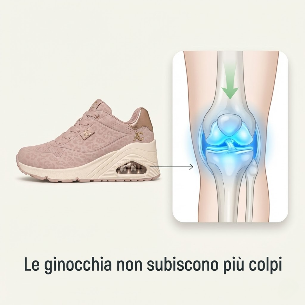 Assorbe l'onda d'urto prima che raggiunga ginocchio e anca. Ogni passo che fai non distrugge più le articolazioni.