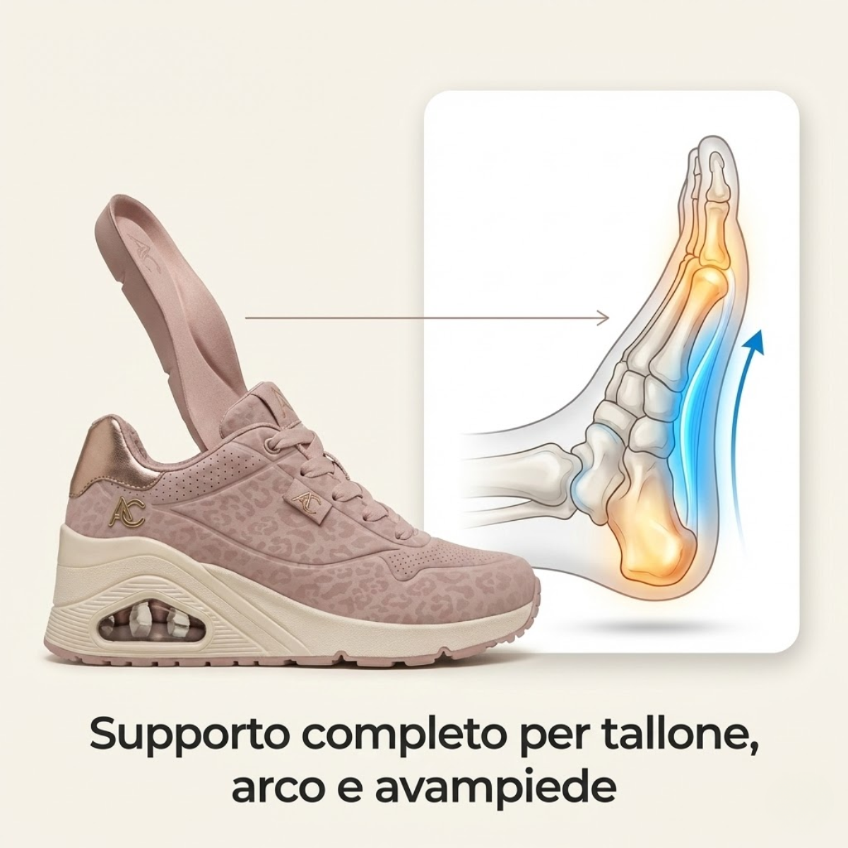 Sostiene tallone, arco e avampiede. Funziona anche con il tuo plantare personalizzato.