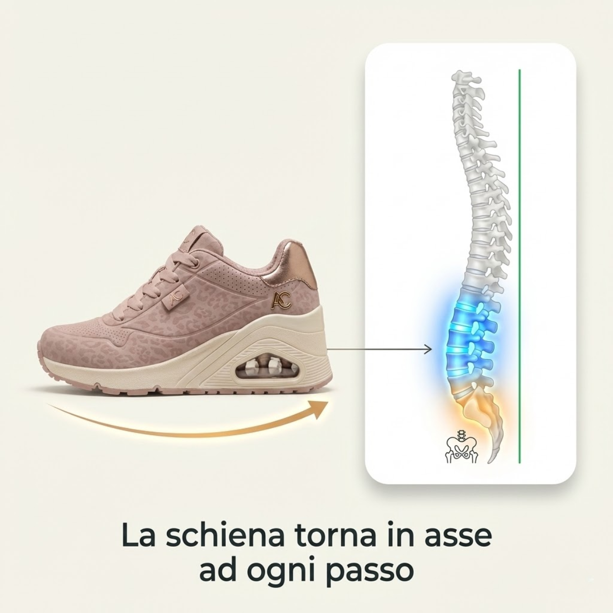 Il cuneo posteriore riallinea il bacino ad ogni passo. La colonna smette di compensare. Il dolore lombare diminuisce.