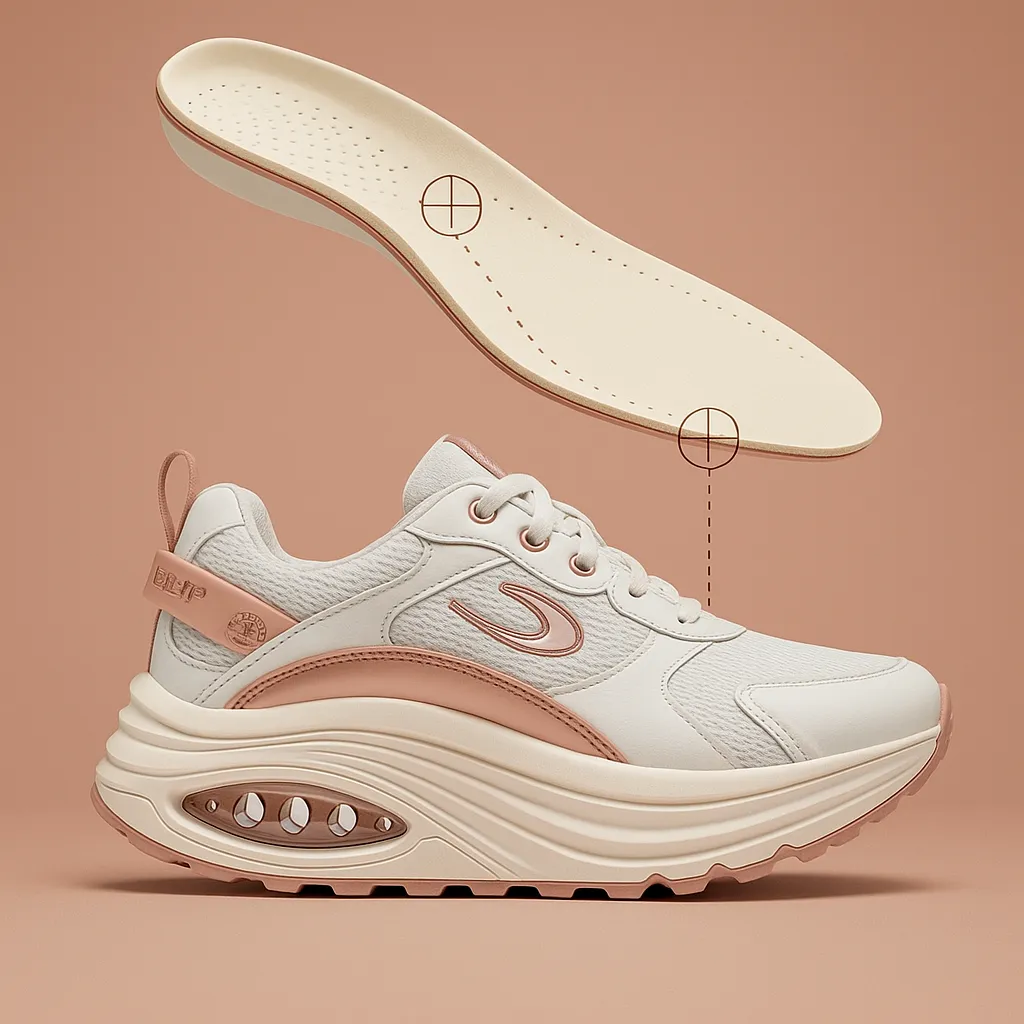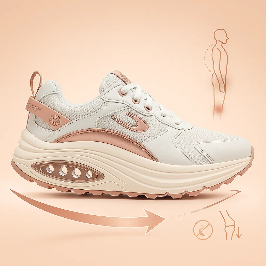 Con suola curva che ti spinge in avanti: cammini con meno fatica, scarichi ginocchia e schiena e attivi i glutei ad ogni passo.